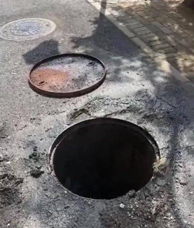 好好的一个人走着走着,怎么一下子就不见了?请注意,圆形的井盖在固定不牢的情况下,一脚踩到边缘是会翻转的,和电视剧里的机关墙一下,突然一下人就不见了。