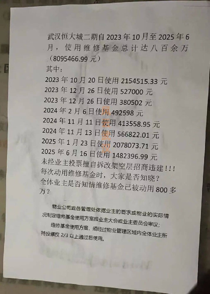 - 惊!武汉新小区,维修基金一年多没了 800 万?