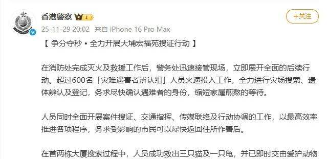 据央视新闻消息,香港特区政府警务处11月29日表示,截至今日下午3时,香港大埔宏福苑火灾已造成128人死亡、83人受伤。