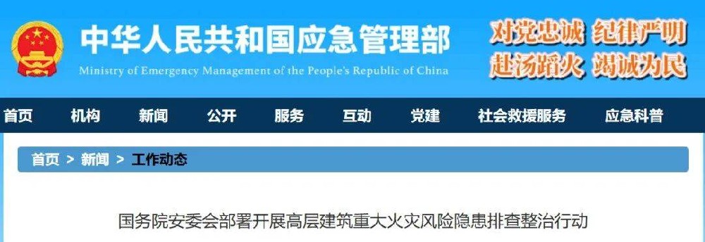 通知强调,各地区要提高政治站位,强化责任意识,统筹好发展和安全,将高层建筑重大火灾风险隐患排查整治作为一项重要任务,下大力气扎实部署推进。