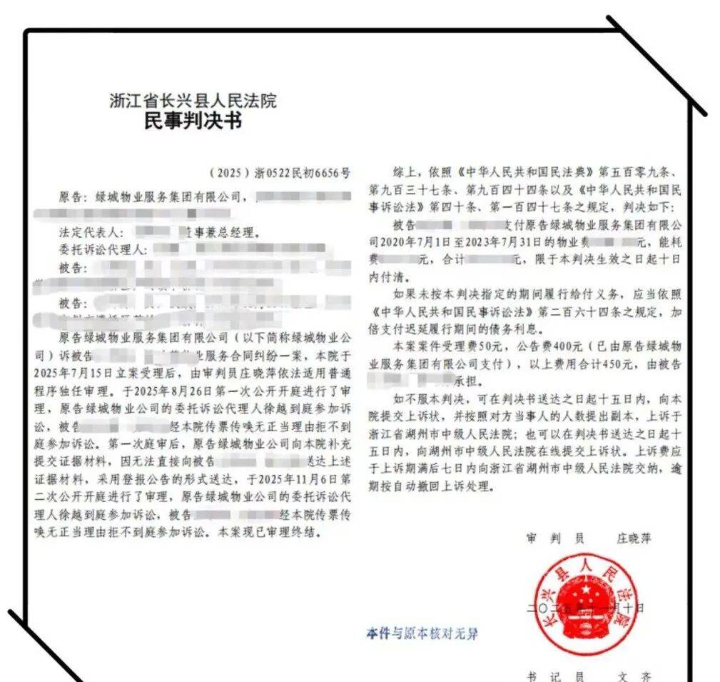 空置房业主欠物业费,被绿城物业起诉,判决出来了