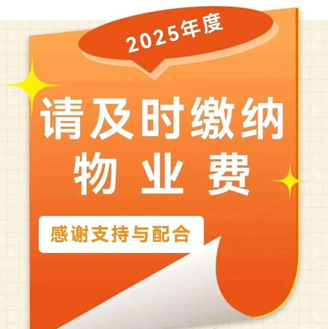 请您抓紧缴纳2025年的物业费。物业服务费不仅是物业公司提高服务的基础和各项服务开支的来源,更加是小区治安秩序、环境绿化及卫生、房屋公共设施配套管理、公共区域维修,以及电梯、配电、公共照明等设备设施正常运转的根本保障。